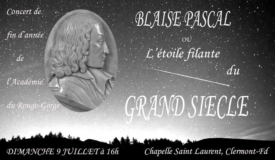 L’Académie du Rouge-Gorge vous invite ce dimanche 9 juillet à 18h pour un hommage lyrique et théâtral rendu à Blaise Pascal, dont nous célébrons cette année les 400 ans !